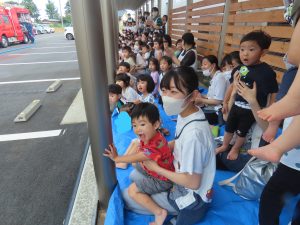 放水の迫力に子ども達は目を丸くして見入っていました😆