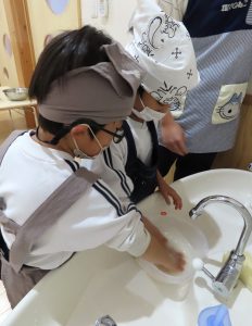 また、お米を研ぐ体験ではお水の冷たさを感じ、日頃美味しいご飯を作ってくださっている