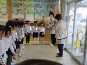 今日は5歳児ぶどう組さんがJA新潟中央さんによる「新潟おこめ応援隊」の企画で