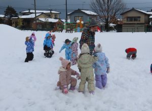 園庭では先週から積もった雪で雪遊びをしている4歳児めろん組さんでした☃️