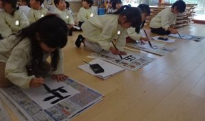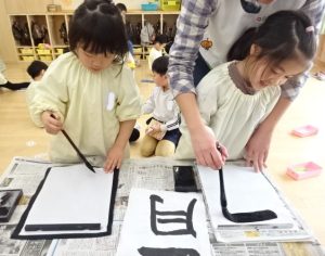お部屋では書初めをしました😊墨の香りや筆の使い心地を感じながら楽しんで行っていました✨