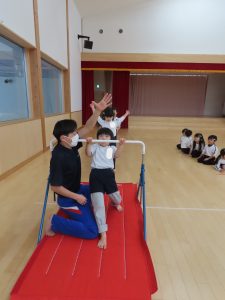 年齢に合わせて鉄棒やマット運動などを行いました👀