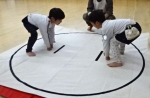 以上児さんは体をたくさん動かして「おすもうごっこ」を楽しんでいます😆