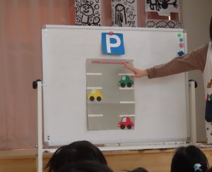 交通安全教室では、「駐車場でのお約束」をクイズ形式で学びました🚔