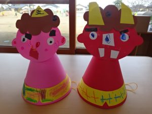 鬼を追い払うため、子ども達は升やお面を作り準備をしていました👀