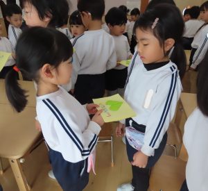 12日に行われるお別れ会の準備も進み、めろん組さんが招待状をぶどう組さんへプレゼントしていました😊