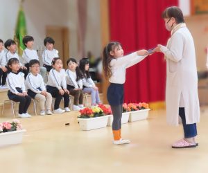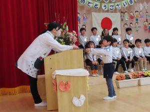 5歳児ぶどう組さんは緊張の表情を見せながらも、堂々とした姿を見せてくれました💕