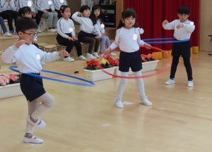 お別れ会で披露した、コマや縄跳び、フラフープも見ていただきました😆👏