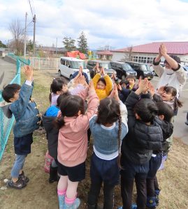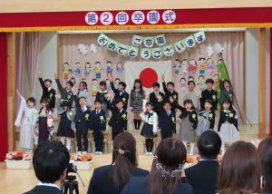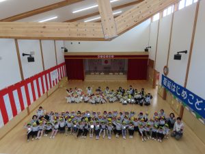 聖籠はじめこども園も2年目です😊先日は全園児で、「二」の文字を作りました💕