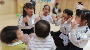 2024.03.26 お知らせ ぶどう組さんと遊びました😆 もう少しでこども園とはお別れになるぶどう組さん😣 今日は未満児さんと触れ合って遊びました😊 お兄さん、お姉さんに遊んでもらい、どの子も嬉しそうな表情をしていましたよ✨ ぶどう組さんは優しく声をかけたり、手遊びをしてくれたりしました💕 一緒に遊べるのも残りわずかです😣楽しい思い出を作っていきましょうね💕