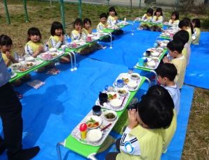 ぽかぽか陽気の中、とっても美味しそうに給食を食べていました✨