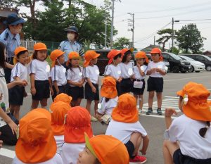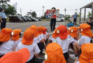 4歳児めろん組さんが、町の交通指導員さんより交通安全について学びました✨