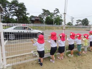 パトカーに釘付けの3歳児もも組さんでした👀😊