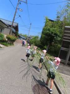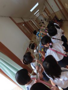 5歳児ぶどう組さんが運んでくれた笹に、各クラスで素敵な飾りつけをしましたよ✨