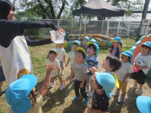 お楽しみコーナーでは職場体験に来てくださった中学生のお兄さん、お姉さんと