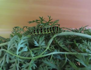 ぶどう組さんの植えた人参にキアゲハの幼虫🦋です👀