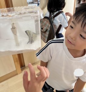 幼虫からさなぎ、蝶になるまでを見守っていた子ども達😆