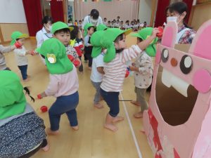 中華料理をテーマに、元気いっぱい楽しんでいた4歳児めろん組さん😄