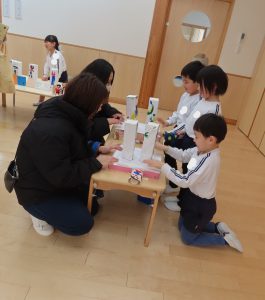 子ども達がお友達と力を合わせて考えたお店にお家を招待しましたよ💕