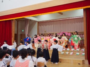 5歳児ぶどう組さんは着物や袴姿を披露し、とても華やかな会となりました🎎