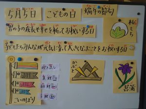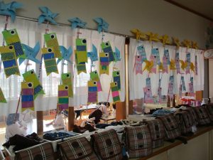 2022.04.28 お知らせ こどもの日の集いを行いました 早いもので、4月ももうすぐ終わろうとしています。 5月5日はこどもの日です。 保育園では一足早く、“こどもの日の集い”を行いました。 子ども達が作った、かわいいこいのぼりもホールに飾りました。 こどもの日はどんな日? お話を聞いたり、 「こどもの日に食べるお餅は、桜餅かな?柏餅かな?」 こどもの日の風習をクイズで答えたりして 楽しい時間を過ごしました。 みんなが元気にすくすくと大きくなりますように(^^)♪