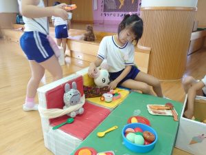 年長さんは、おままごととぬいぐるみで遊んでいました。