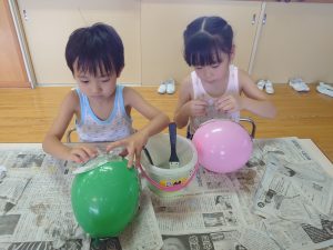 年長さんは10月1日に行われる展示会の作品作りに取り組んでいます。