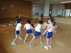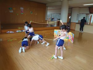 縄にぶつからないようにくぐる遊びも楽しんでいました。