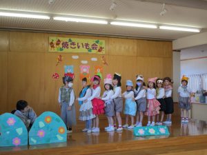 衣装を着て、おじいさんやおばあさん、娘、動物の役になり、