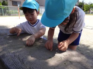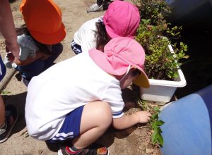 2023.06.19 日々の様子 今日の保育園! 園庭には、あじさいの花がきれいに咲き、 心地よい風が吹いています。 「だんごむし!みつけたよ~」 虫探しに夢中の子ども達・・・ 体を動かすこともだ~いすき✨ 草花を集めてレストランごっこ🥄 「バッタさん!かわいい~♡」 いろいろな発見を楽しんでいました😊