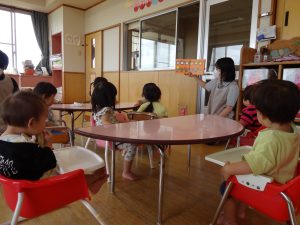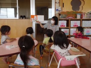 2023.06.23 日々の様子 ABC! ほし・つき・にじ組はABCに参加しました。 ニール先生と楽しく英語に親しみ、 「ハロ~ハロ~!」と、子ども達の げんきなあいさつがホールに響いていました✨ はな組・そら組さんは、大好きな読み聞かせの時間! 「おはなし~♪おはなし~♪ パチッパチッ・・・🎵」 絵本に夢中の子ども達😊明日はどんなお話かな・・・♡