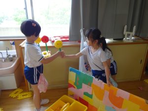 2023.06.29 日々の様子 今日の保育園! 子ども達の発想力はすばらしいですね😊 遊びの “達人” です! お友だちと相談して、どんどん発展していきます。 お家ごっこやお店屋さんごっこ・・・ ブロックや積み木、お人形や布。 いろいろなものを工夫して、遊びを楽しんでいます✨ 日々、チャレンジする子ども達! 吸収するスピードもはやく、あっという間に 上達します。 毎日、暑さに負けず、元気いっぱいです😊
