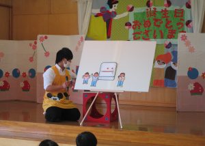 2023.06.30 日々の様子 お誕生会👑 ♬ お誕生日おめでとうございま~す ✨ 今日は6月のお誕生会! みんなでお祝いしました♡ 「どんな遊びがすきかな・・・?😊」インタビューをしたり クラスのお友だちから、歌のプレゼント! ♬ ミッキ~マウス ミッキ~マウス ♪ お誕生日のお友だちは元気にお遊戯の発表! たのしい会となりました✨