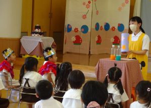 2023.07.28 日々の様子 お誕生会👑 今日は7月生まれさんのお誕生会でした✨ インタビューでは少し緊張気味のお誕生児さん・・・ お友だちにたくさんお祝いをしてもらい、 嬉しそうな表情を見せていました! おたのしみコーナーのマジックショーでは、 「チチンプイプイのプイ!」 おまじないをとなえて、盛り上がりました😊 たのしいダンスを元気よく発表して、たくさんの 拍手をもらい、嬉しいそうな7月生まれさんでした✨ おめでとうございます♡