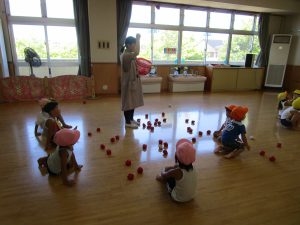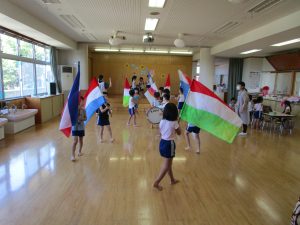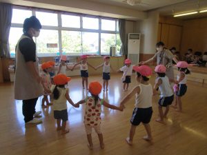 お遊戯やマーチングなど、音楽に合わせ、歌を口ずさみながら