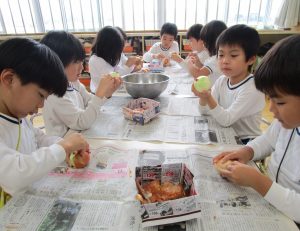 2023.10.20 日々の様子 玉ねぎの皮むき 今日は、にじ組さんが玉ねぎの皮むきの お手伝いをしてくれました! みんなの手のひらより大きな玉ねぎ・・・ 茶色い皮を上手に向き、やり切った表情を浮かべて いた子ども達です😊 剝いてもらった玉ねぎは、ドライカレーに変身✨ みんなで美味しくいただきました💗