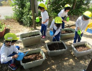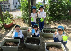 みんなで「大きくなぁれ、大きくなぁれ」と