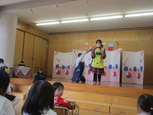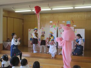 2024.10.25 つぶやき お誕生会♪ 10月生まれさんのお誕生会をしました♪ うさぎさんが来てくれて、一緒にお祝いです! おたのしみコーナーでミッキーマウスマーチを元気に踊ってくれました😊 先生からは「猿蟹ばなし」のエプロンシアターを見せてもらい、 真剣にみていました!「くり~」の言葉が面白かったようです!(^^)! 美味しい給食も楽しみ、大満足な子ども達でした! また来月もたくさんお祝いしましょうね♬ 10月生まれさん、おめでとうございました😊