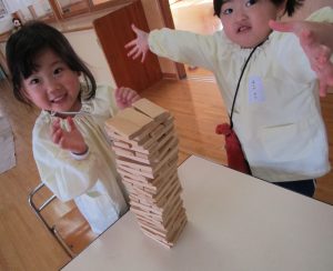 こちらでは、ジェンガを積み重ねて、ゲームの始まり・・・
