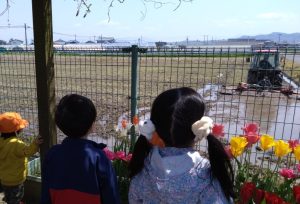 園庭の隣の田んぼの耕し作業がはじまりました!