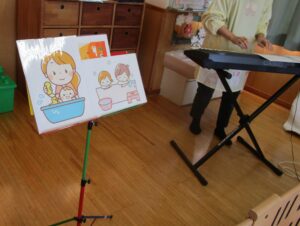 音に合わせて「う~え」「し~た」と上手にとんとん