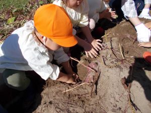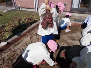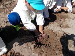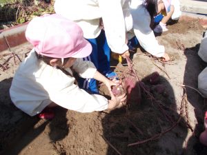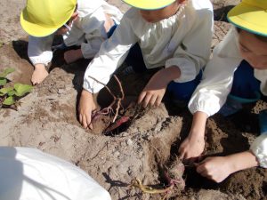 大きいクラスは、お芋が折れないように慎重に慎重に掘っていました。