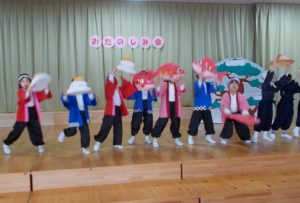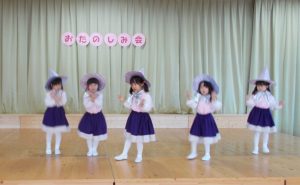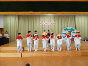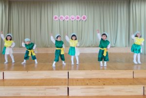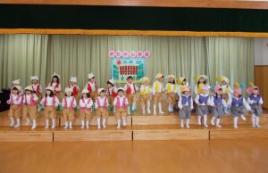 2021.12.14 お知らせ おたのしみ会 12月11日(土)3歳以上児クラスの“おたのしみ会”が行われました。 オペレッタ・・・年少「3びきのやぎのがらがらどん」。年中「ねずみのよめいり」。 年長「かさじぞう」。子ども達は役になりきりセリフを言ったり、歌をうたい、 元気いっぱい発表しました。 お遊戯・・・それぞれ曲のイメージに合わせた可愛らしい衣装♡カッコイイ衣装、 袴姿を披露して、沢山の拍手をいただきました。ありがとうございました!