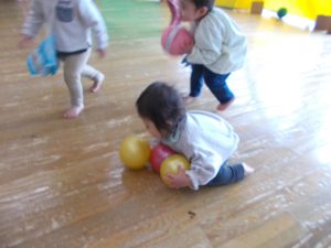 春の頃に比べてたくましく成長したもみじ組(0.1歳児)さん!