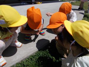 虫探しに夢中の子ども達。何をみつけたのかな・・・?