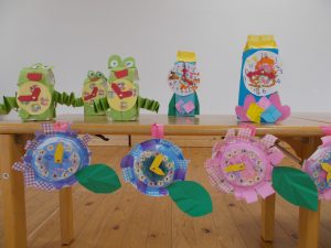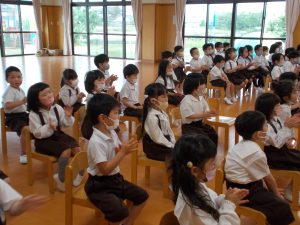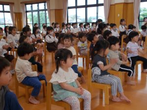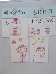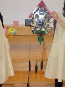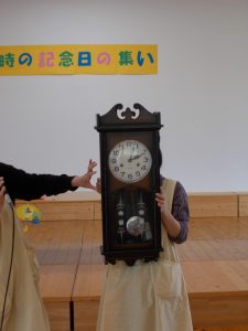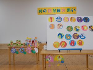 2022.06.13 日々の様子 時の記念日⏰ 先日、子ども達が作った可愛らしい時計をステージに飾り、 『時の記念日の集い』を行いました。 時の記念日の由来を聞き、いろいろな種類の時計に興味津々の 子どもたち! 時の記念日にちなんで「すうじのうた♪」をみんなで楽しく歌いました😊