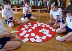 2022.08.31 日々の様子 今日の保育園! 明日からいよいよ9月ですね。 日中はまだまだ蒸し暑い日もありますが・・・ パワー全開!!元気いっぱいの子どもたちです😊 「猫に小判!」「七転び八起き!」 つばき組(4歳児)さんは、ことわざカルタを楽しみました。 さくら組(3歳児)さんは指先も器用になって、 粘土で思い思いのものを表現していました✨ もみじ組(0歳児)さんは、あんよやハイハイが上手になり、ホールで たくさん体を動かしました😊 今日もいっぱい遊んで、いっぱい笑って楽しく過ごしました!