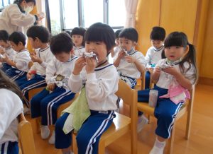 保育園の畑で収穫したさつま芋をみんなで美味しく頂きました。