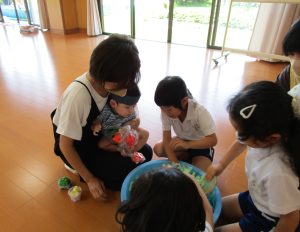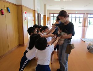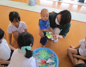 小さいお友達が大好きなすぎ組さん。話しかけたりと触れ合いを楽しんでいました。