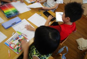 子ども達です。考えながら、グループや個人でとても良い作品が